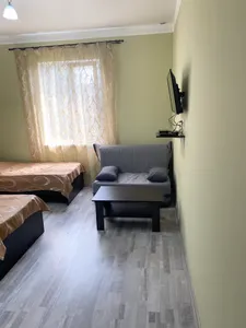 В мини отеле «Кипарис» одновременно могут остановится до 12 гостей , это четыре номера класса комфорт , в каждом номере могут разместится до трех человек , место тихое спокойное , в двух номерах своя кухня , в двух других общая кухня 13 кв.м.рядом с номерами , в каждом номере имеется кондиционер , телевизор , санузел , триколор , WI-Fi , а также на территории отеля имеется охраняемая парковка для авто .